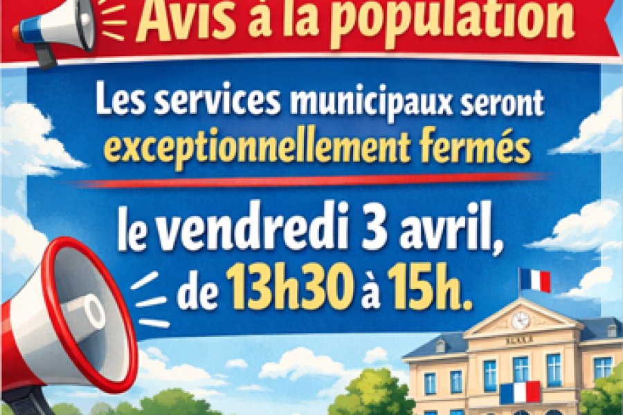 Les services municipaux seront exceptionnellement fermés le vendredi 3 avril, de 13h30 à 15h.